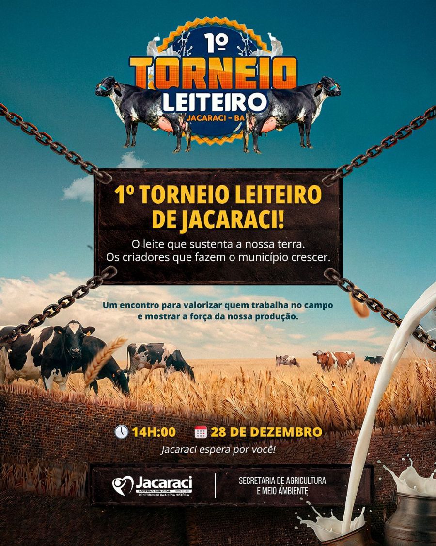 Às 14h, o espaço recebe um marco histórico: o 1º Torneio Leiteiro de Jacaraci, valorizando técnica, manejo e o trabalho silencioso que sustenta tantas histórias no campo.