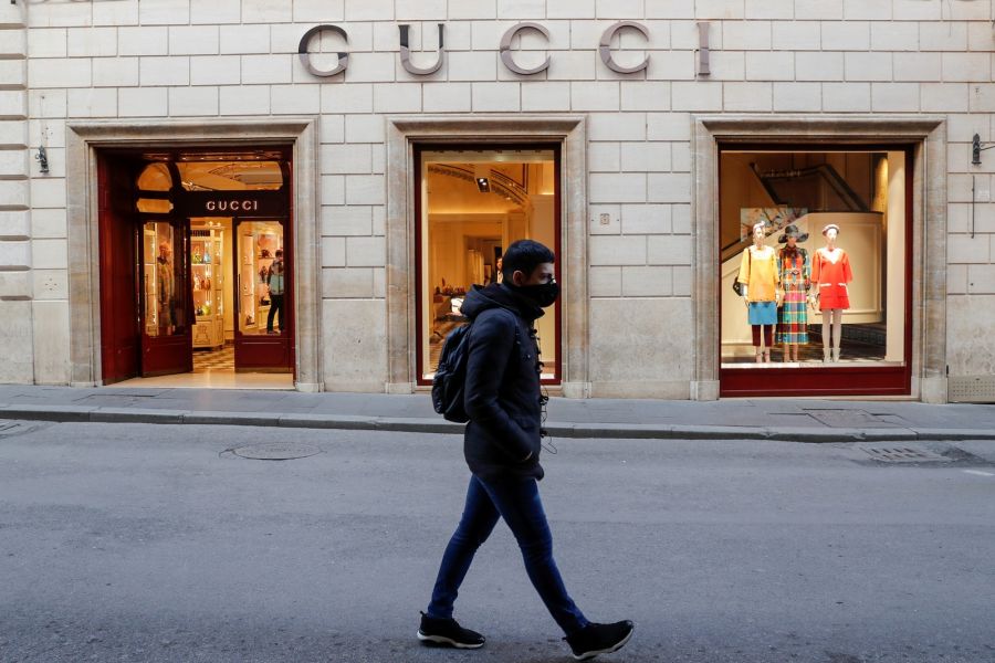 Homem caminha diante de loja de grife na Via dei Condotti, em Roma, nesta terça (10) — Foto: Remo Casilli/Reuters